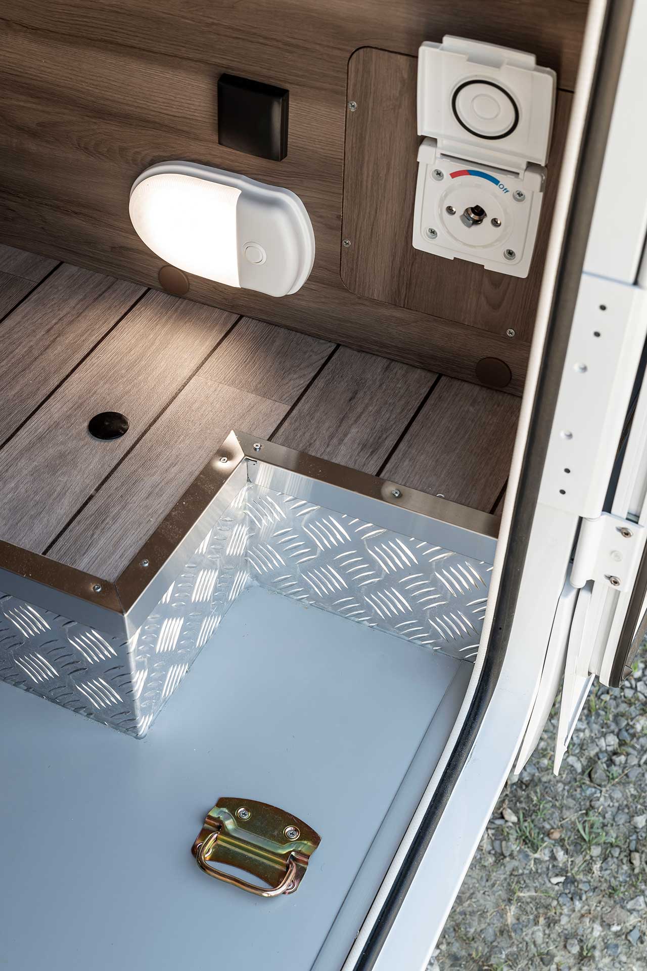 Wer große Urlaubspläne hat, braucht natürlich auch viel Platz. Gut, dass du trotz der Kompaktheit des Fahrzeugs auf eine riesige Heckgarage zurückgreifen kannst, in der sich bei Bedarf sogar die Fahrräder unterbringen lassen.
